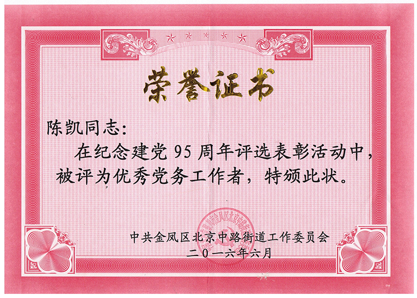 陳凱榮獲優秀黨務工作者