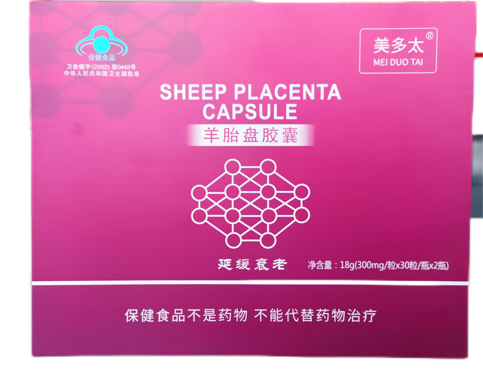 本品是以羊胎盤、淫羊藿、菊花、紅花為主要原料制成的保健食品,經功能試驗證明,具有延緩衰老的保健功能。
