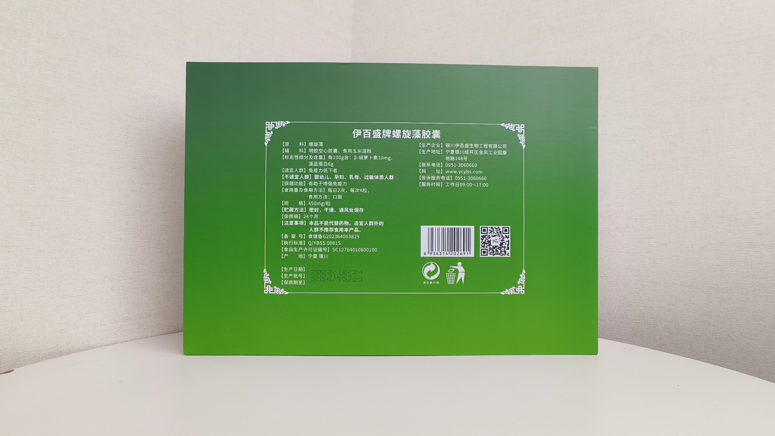 【標志性成分及含量】每100g含:β-胡蘿卜素10mg、藻藍蛋白6g
