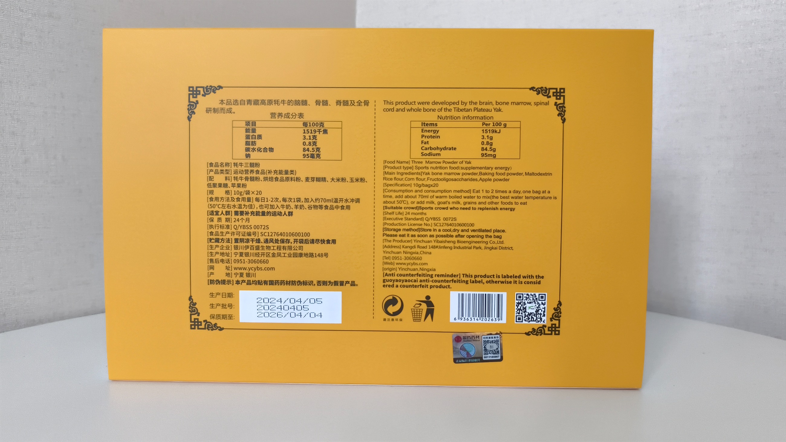 [配 料]牦牛骨髓粉、烘焙食品原料粉、麥芽糊精、大米粉、玉米粉、低聚果糖、蘋果粉